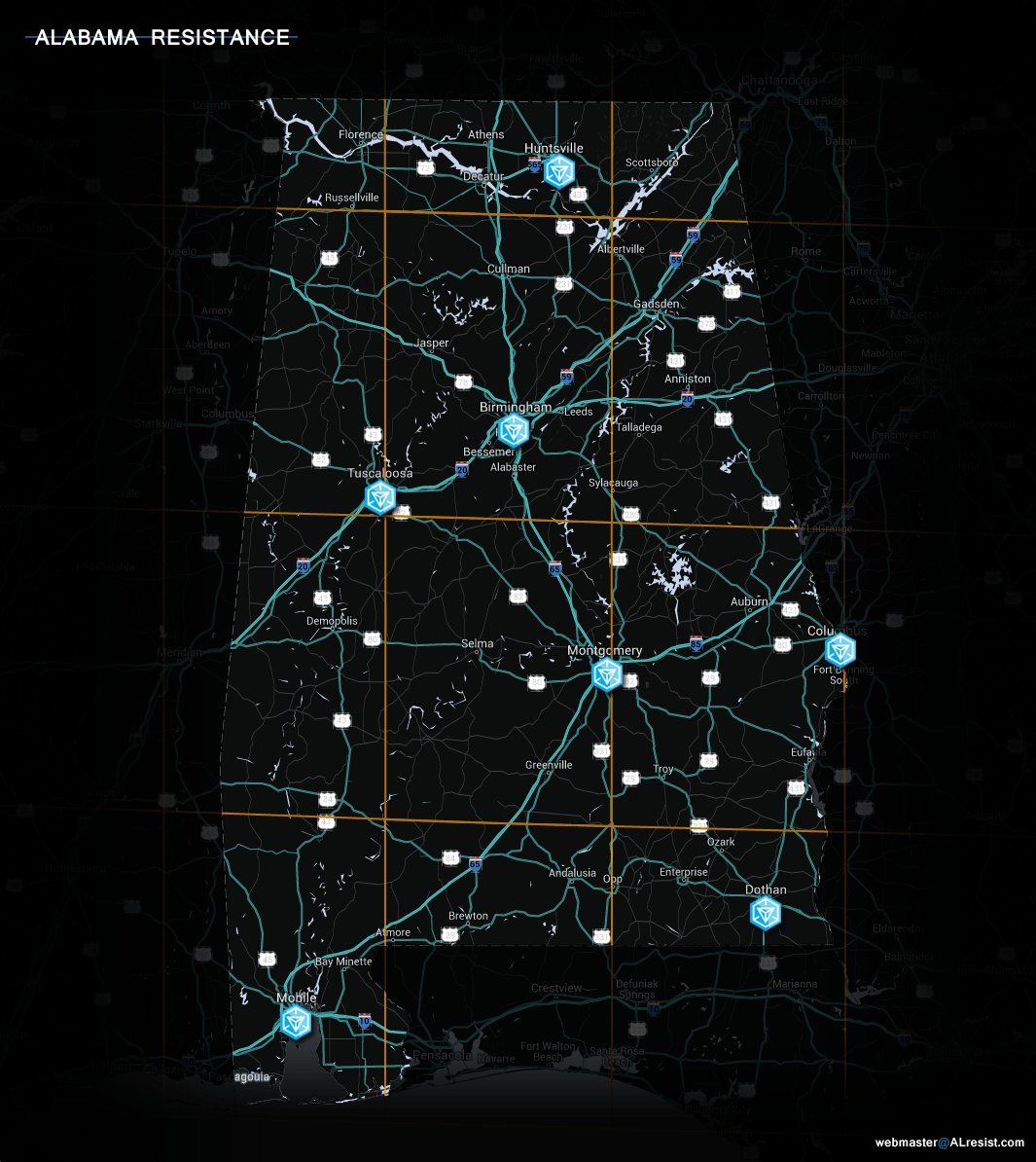 Birmingham Resistance Tuscaloosa Resistance Huntsville Resistance Montgomery Resistance Mobile Resistance Columbus
